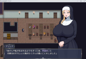 物語の目的は「悪霊を祓う」「大聖堂を目指す」の2つですが、どちらもスルーしてもOK!冒頭の東の村からダンジョンの方へ進んでも良いですし、船に乗って街へ向かってもOK!自由度の高いフリーシナリオなので、自分の直感的に従って楽しめます!また淫紋が刻まれたアリシアは、保っている理性によって発生するエロイベントが変化!
