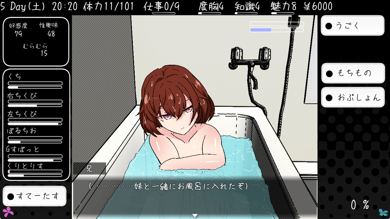 - 風呂覗き、こたつでいたずらのほか風呂でイチャイチャもできてプレイの幅が広い