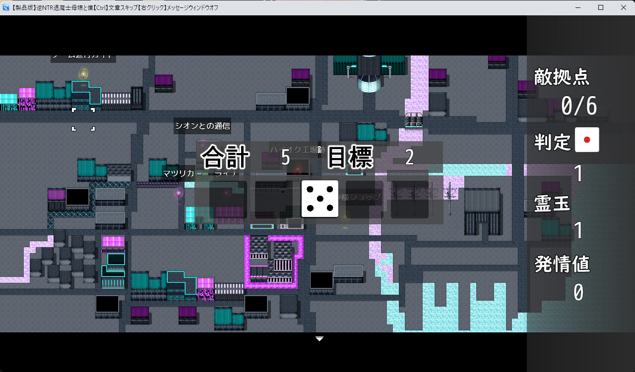 街のマップで表示されているアイコンを選択し、アイテムを回収&エロイベント&ダンジョン攻略を進めていきましょう!バトルで優位になるアイテムや、各種バフを付与できるダイスは爆乳母娘とエッチすることで溜まる「発情値」と引き換えに手に入れることができます。ボスを含めた的とのバトルでもNTRエロイベントを進めることで優位になるのですが、エンディングはマルチエンドでかつフラグ管理も必要ないので散々浮気したあとに本命のシオンさんと純愛エンドを迎えることも可能です!